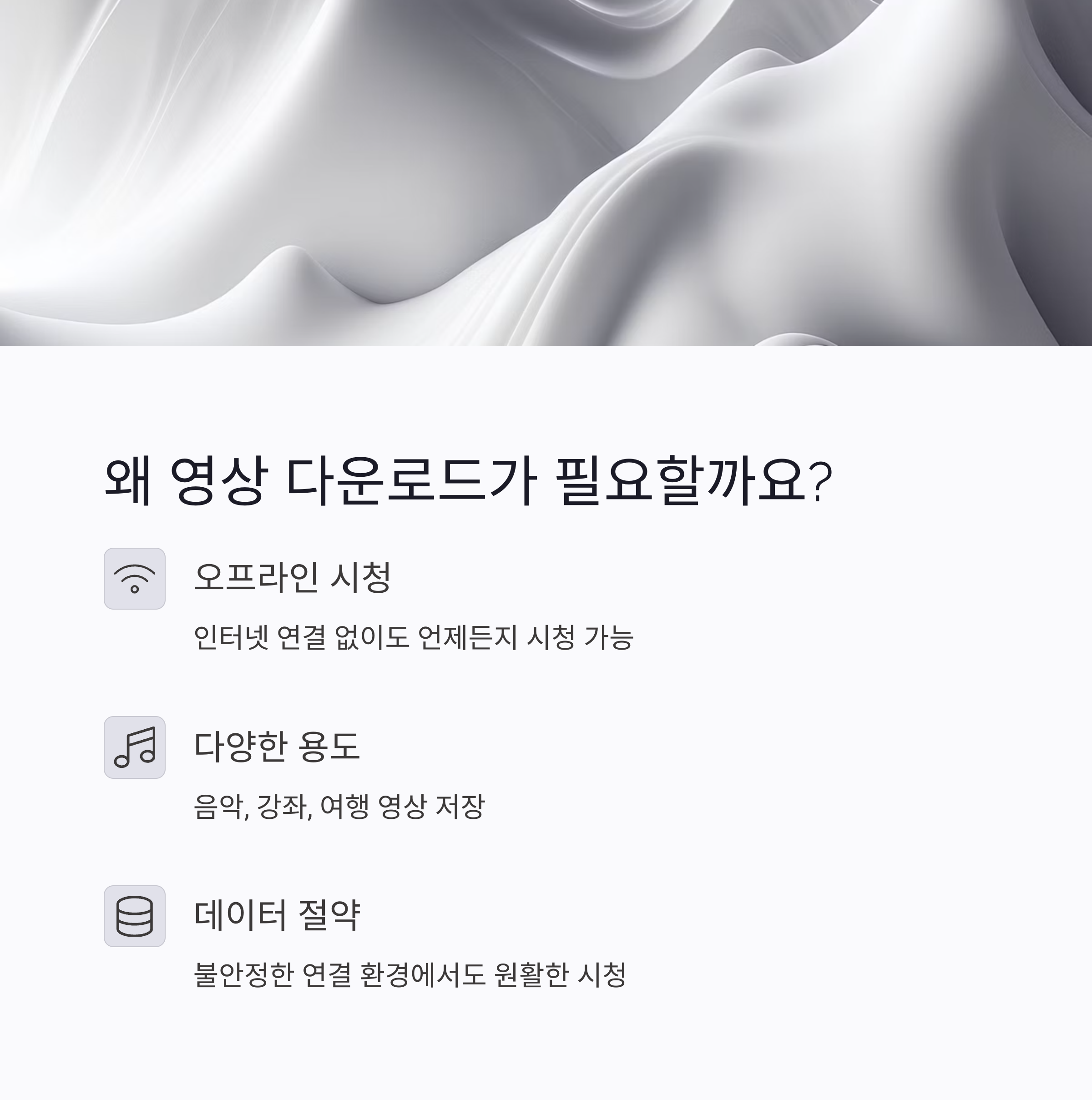 이제부터는 상황에 맞게 선택할 수 있는 유튜브 영상 저장법을 소개합니다. 설치 없이 가능한 방법부터 고화질, 오피셜 저장까지 정리했어요.