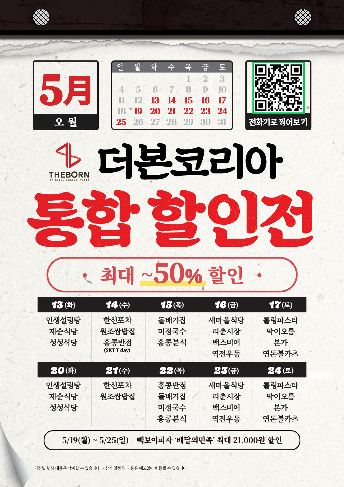 이번 5월, 가족 외식도 친구 약속도 더본코리아 할인전으로 가볍게 즐겨보세요.